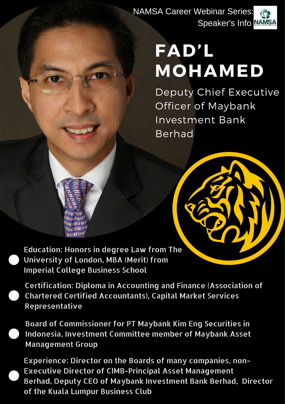Namsa Official On Twitter We Will Be Hosting Mr Fad L Mohamed The Deputy Ceo Of Maybank Investment Banking Berhad As The Guest Speaker Https T Co Ykh2ymuy1j Twitter